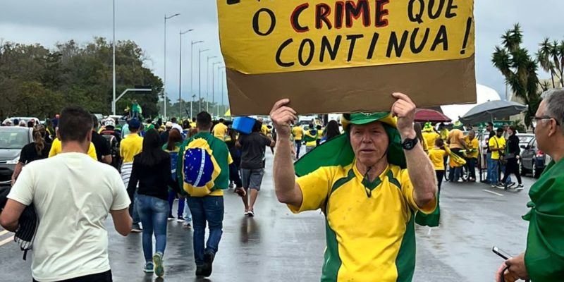 Após mudarem o local da manifestação desta terça-feira (1º/11), os manifestantes presentes no Quartel General do Exército Brasileiro, no Setor Militar Urbano (SMU), em Brasília, afirmam que o chefe do Executivo legitimou a insatisfação dos eleitores com o resultado das urnas no domingo. Vestidos de amarelo, com bandeiras do Brasil nas costas, eles afirmam que vão permanecer por 24 horas no local.