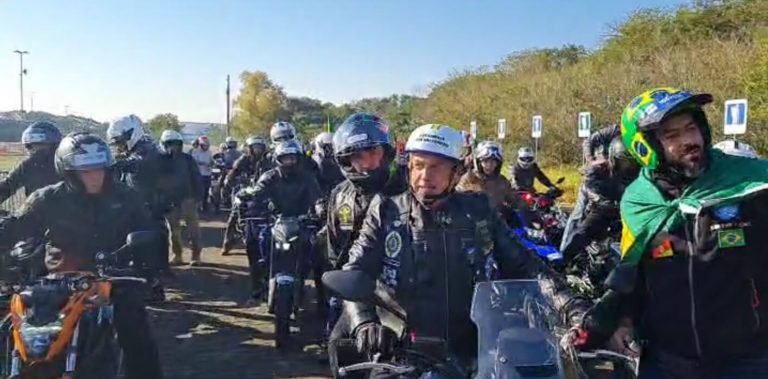 O presidente Jair Bolsonaro realiza neste sábado, 10, uma motociata com apoiadores em Porto Alegre (RS). A manifestação iniciou-se às 10h na capital gaúcha. Será o quinto ato desde o ocorrido no Dia das Mães, em Brasília.