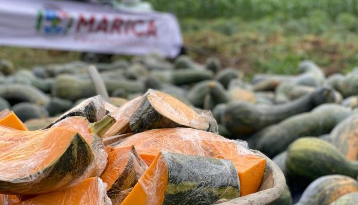 Uma colheita que pode chegar a 20 toneladas de abóbora foi iniciada nesta semana na fazenda pública Joaquim Piñero (antiga Fazenda Ibiaci), no Espraiado, e será distribuída à população na próxima semana. A informação foi dada pela Secretaria de Agricultura, Pecuária e Pesca de Maricá, que costuma entregar a produção da fazenda na rede municipal de ensino.