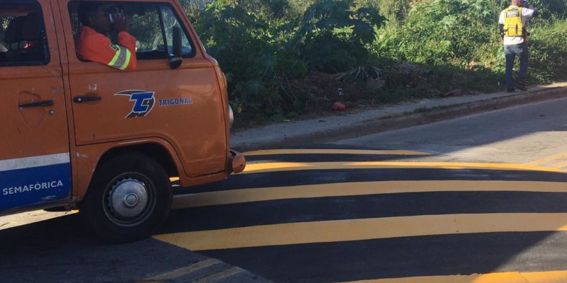 Funcionários da prefeitura de Maricá e da empresa Trigonal realizaram nesta segunda-feira (26) uma operação para sinalizar as lombadas recém-instaladas em Itaipuaçu.