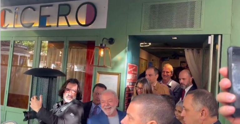 Ao desembarcar em Lisboa, na sexta-feira 18, depois da viagem ao Egito, o presidente eleito Luiz Inácio Lula da Silva (PT), almoçou como o ministro Gilmar Mendes, do Supremo Tribunal Federal (STF), no Cícero Bistrô, restaurante no bairro do Campo de Ourique, pertencente ao ex-banqueiro Paulo Della Mora. Na saída, apoiadores foram à porta do restaurante, mas também houve protesto contra Lula.