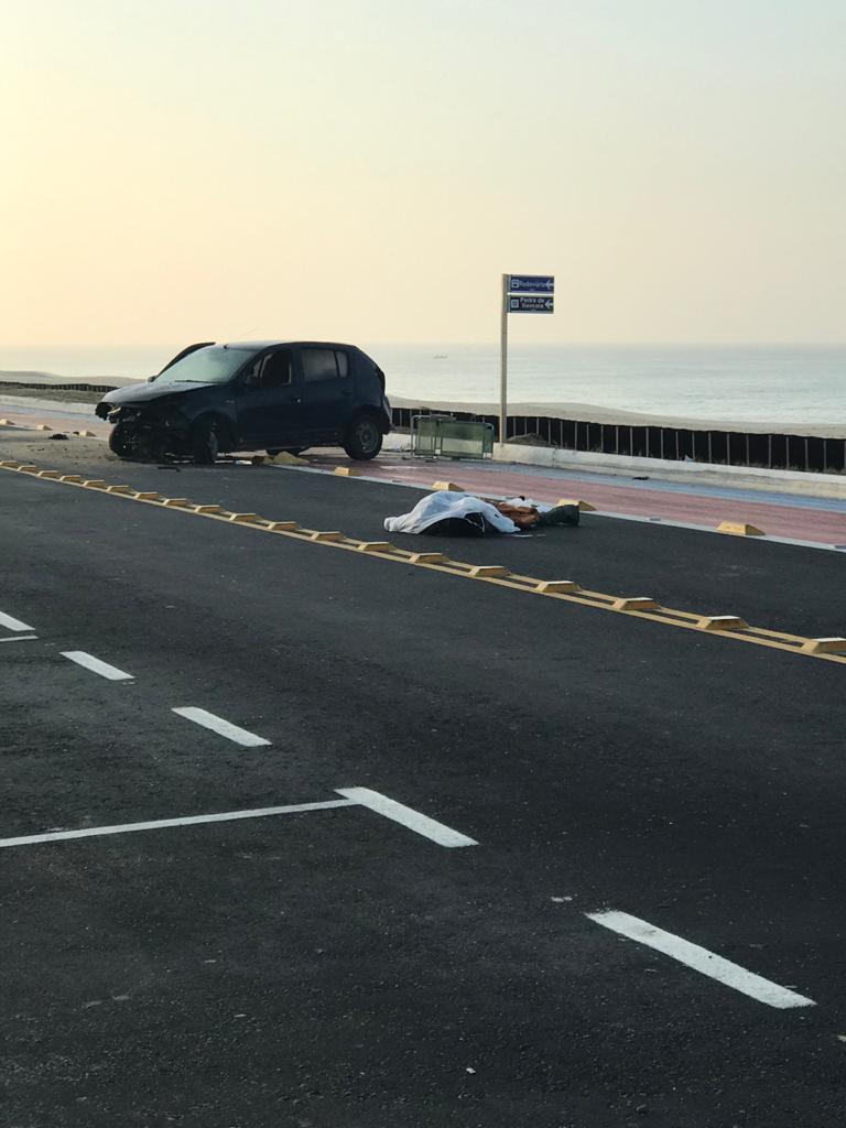 Desgovernado o veículo saiu da pista e avançou a ciclovia e o início da faixa de areia, atingiu as estacas-prancha e retornou pra pista. Com a força do impacto o motorista foi ejetado por cerca de 15 metros de distância. Populares que presenciaram o acidente acionaram o socorro médico.