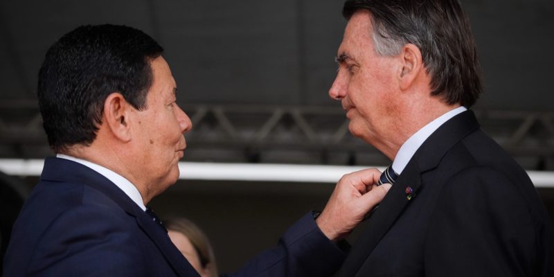 O vice-presidente Hamilton Mourão se aproximou de Bolsonaro, que olhava com semblante fechado para o grupo de militares aspirantes a oficial do Exército, e disse algumas palavras. O presidente se limitou a negar com a cabeça, ainda em silêncio. Questionado sobre a conversa nesta terça-feira, na saída do seu gabinete no Palácio do Planalto, Mourão revelou o que falou ao companheiro de chapa em 2018.